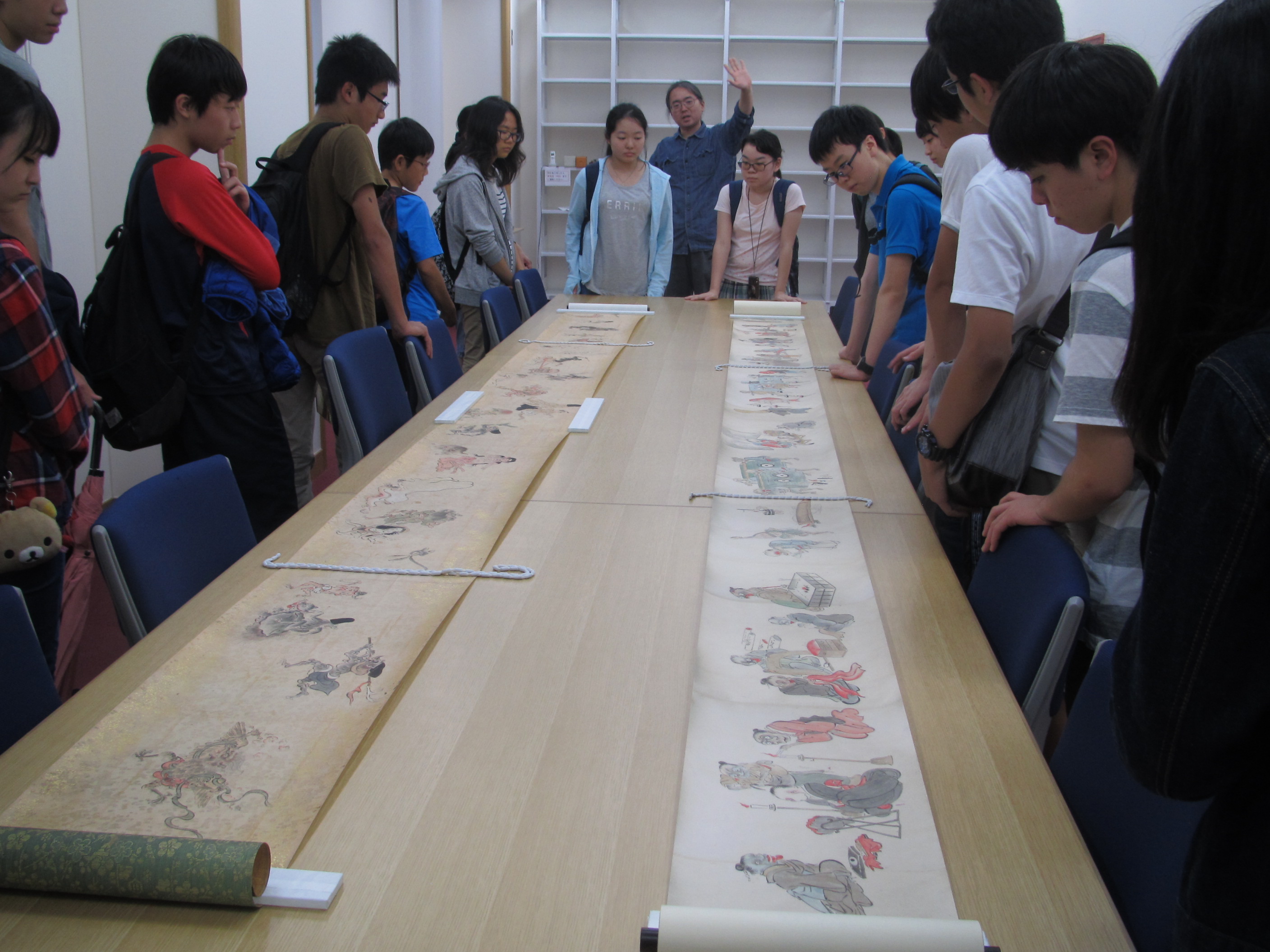 その後、日文研図書館で「化物婚礼絵巻(複製)」、「吉光百鬼の図(複製)」の展示資料や、日文研内にある情報工房での日本研究資料のデータベース化作業を見学し、充実した一日を過ごされました。