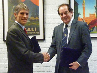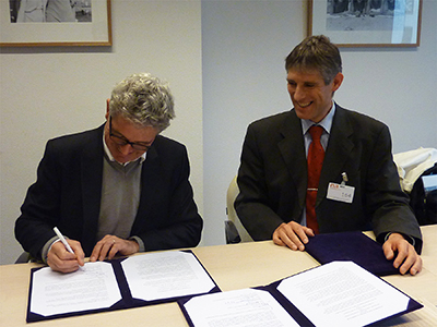 締結は、日文研小松和彦所長が署名した協定書を、フレデリック・クレインス准教授がライデン大学文学部及びハーグ国立文書館に持参し、ライデン大学ウィム・ファンデンドゥール文学部長、ハーグ国立文書館マーレンス・エンゲルハルト館長がそれぞれ協定書に署名しました。