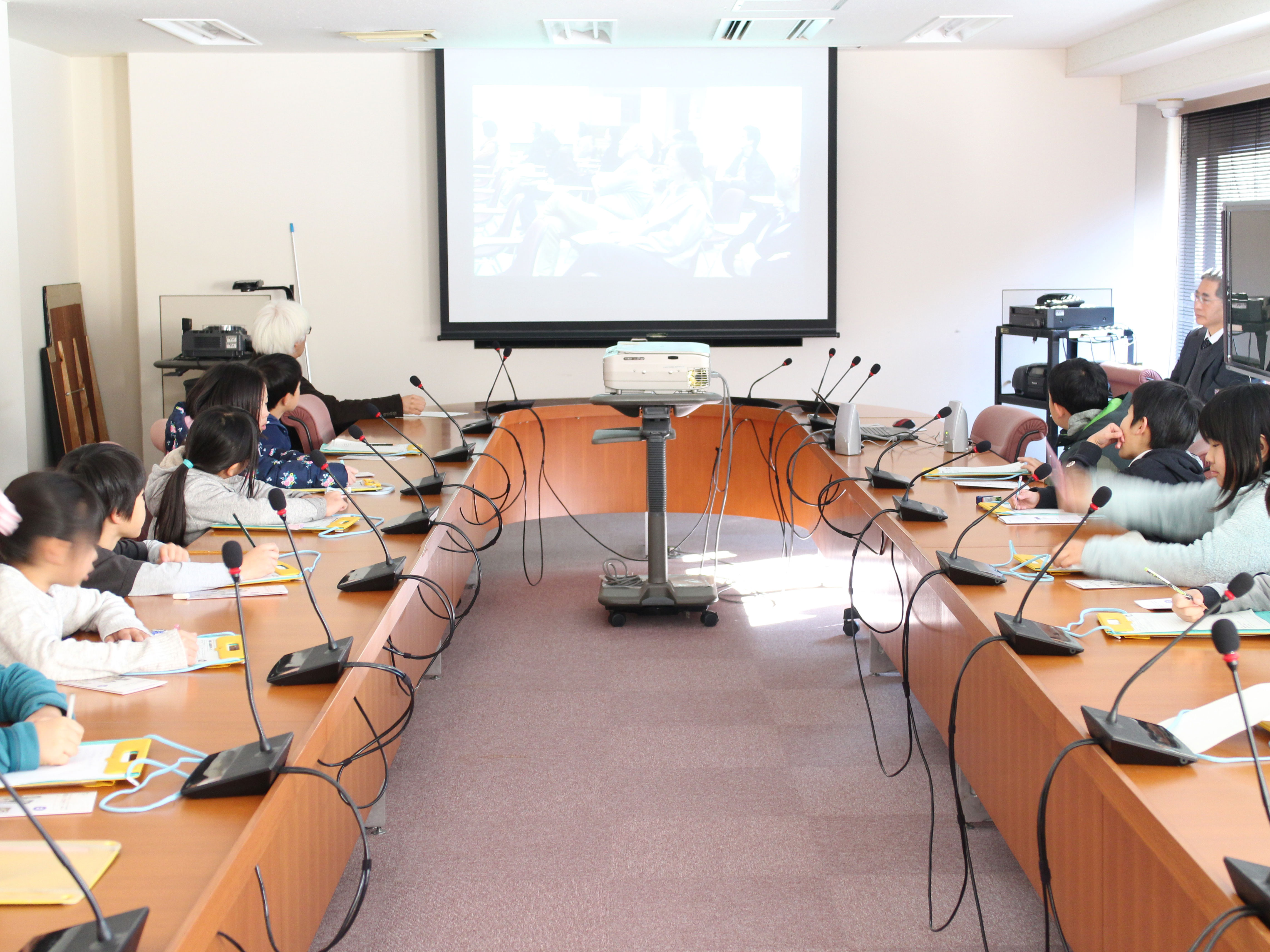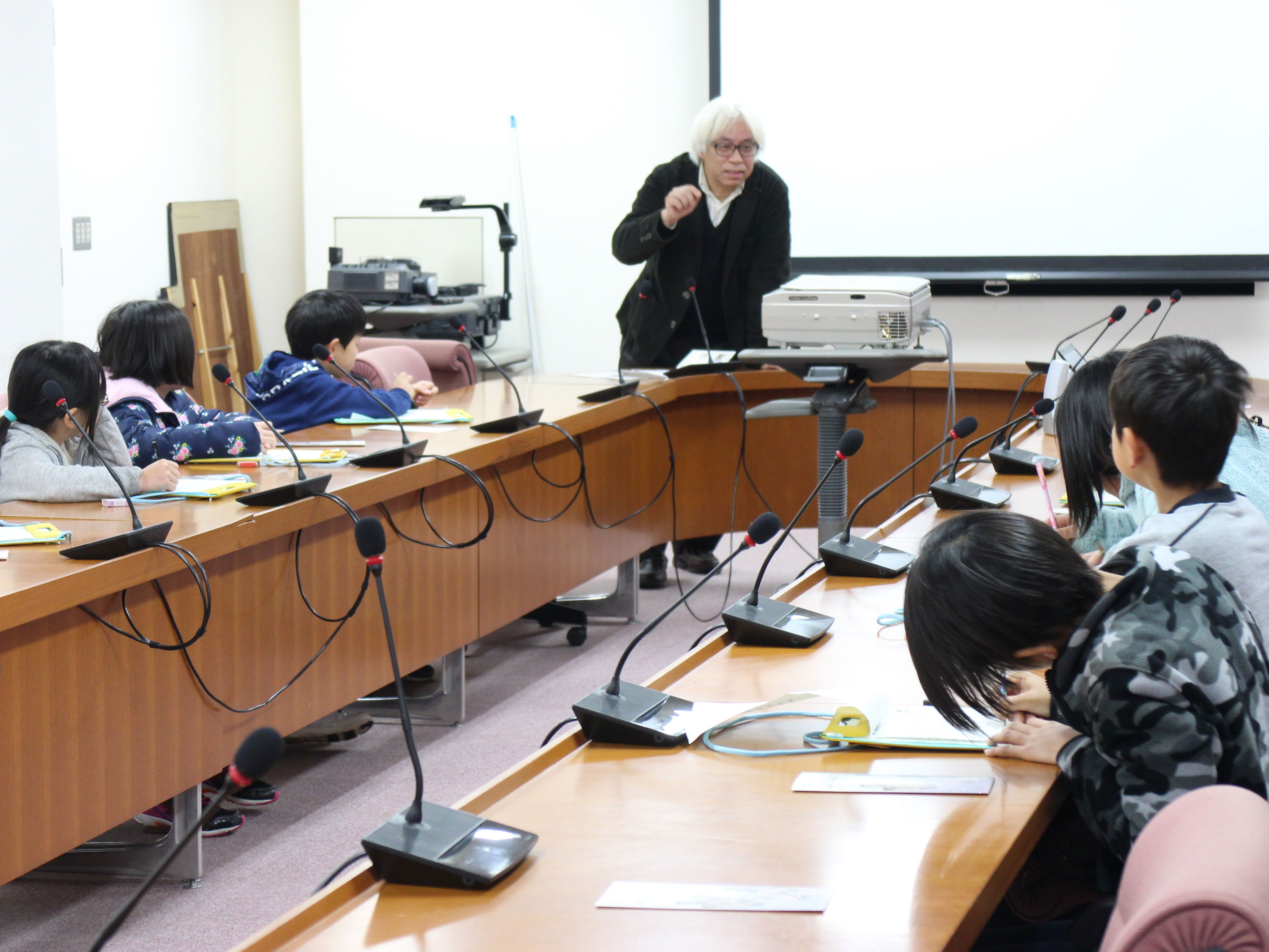 去る1月25日(水)に京都市立桂坂小学校3年生の児童12人が社会見学として国際日本文化研究センター(日文研)に来所されました。最初に日文研の施設や研究活動等の概要についてのビデオをみたあと、劉建輝(リュウ ケンキ)副所長から日本文化について説明を受けました。児童たちは日文研の活動にとても興味を持ったようで、たくさん質問の手が挙がり、楽しい質疑応答となりました。