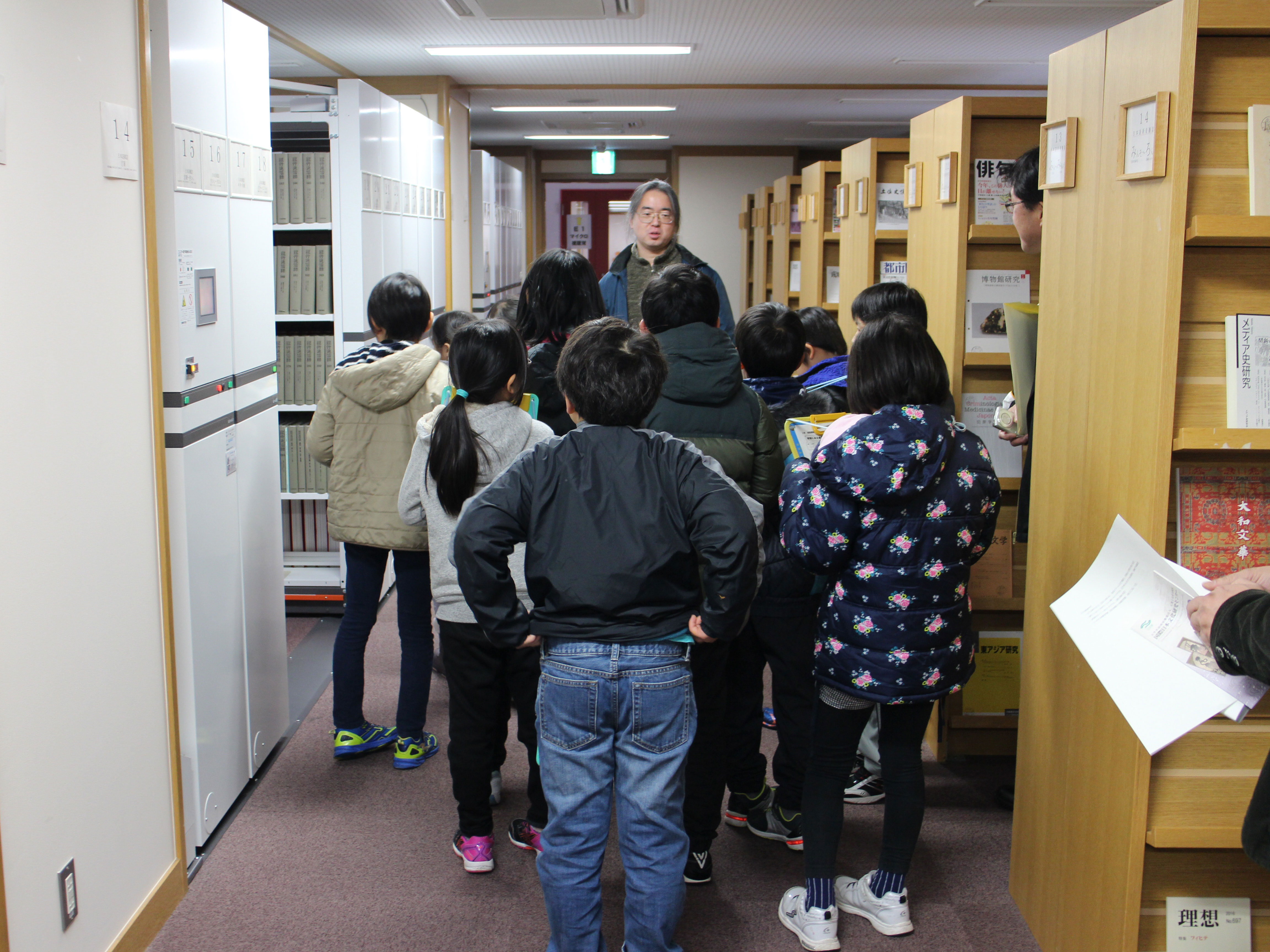 その後、施設内を見学し、図書館では膨大な量の蔵書に圧倒された様子でした。