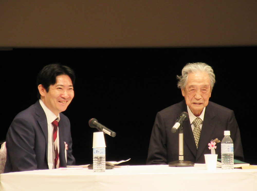 最初に講演会第1部では、「日文研と私-回顧と展望」と題し、梅原猛日文研顧問が磯田道史准教授を聞き手として、日文研創立の理念や設立後の経緯、また日文研の将来などについて語りました。続く講演会第2部では、シカゴ大学のジェームス・E・ケテラー教授が登壇し、「日本研究の諸問題-歴史と歴史学をめぐる省察」と題して講演を行いました。