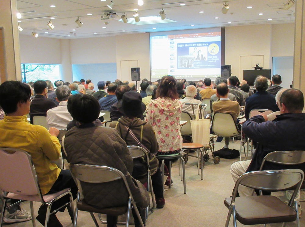 ミニ講演としてセミナー室では「昭和初期の演芸SPレコードと大衆文化」と題し、演芸レコードを聴き比べながら昭和初期の大衆文化の多様性について講演が行われ、定員を大幅に超える参加者の熱気に包まれました。