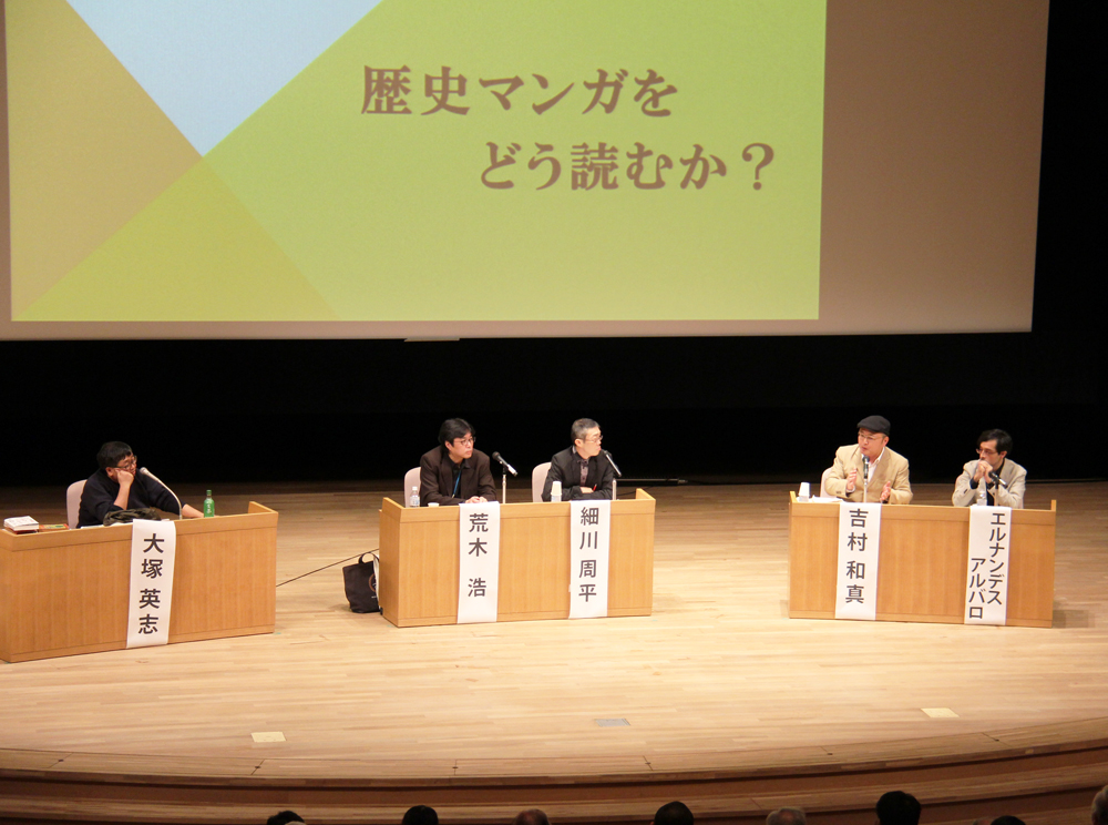 講堂では、午前に「歴史マンガをどう読むか?」と題し、ベテラン教員と日本・メキシコのマンガ研究者がそれぞれ選んだマンガの読み解きと座談会を行いました。午後は「日本史の戦乱と民衆」と題し、4人の教員が古代から近代までにあった日本の内戦を民衆に焦点を当ててそれぞれ解説し、座談会を行いました。