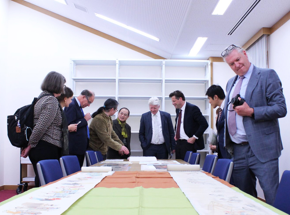 11月21日(火)、カーレル・ストルカー ライデン大学長、イフォ・スミッツ日本学科長ら一行が日文研を訪問されました。今回の訪問は、日文研が実施している人間文化研究機構ネットワーク型基幹研究プロジェクト「ハーグ国立文書館所蔵平戸オランダ商館文書調査研究・活用」の推進に関する協定をハーグ国立文書館及びライデン大学文学部との間で昨年12月に締結したことが契機になっています。