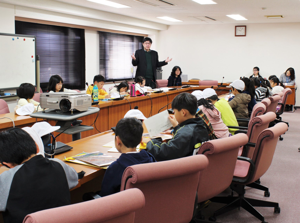 去る12月6日(水)に京都市立桂坂小学校3年生の児童18人が社会見学として国際日本文化研究センター(日文研)に来所されました。日文研の施設や研究活動等について映像での紹介があり、荒木浩教授から、普段の研究活動や日本文化について説明がありました。