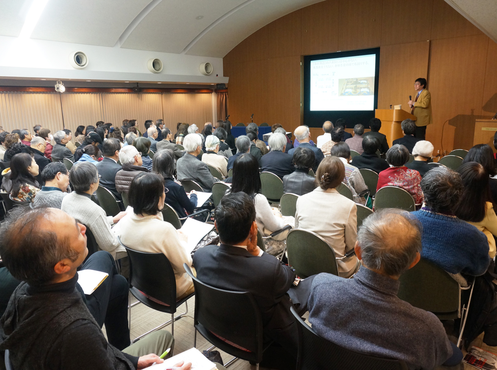 1月30日(火)東京都港区の国際文化会館講堂にて、日文研・アイハウス連携フォーラムを開催しました。本フォーラムは、日文研と公益財団法人国際文化会館(アイハウス)が連携し、現代日本と日本人への理解を多角的に深めるため、2014年度から開催しているもので、第13回目となる今回は、日文研の荒木浩教授が「光源氏と〈二人の父〉という宿命―ブッダの伝記が照らし出す『源氏物語』の視界」と題して講演を行い、105名の参加がありました。