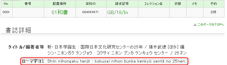 先日のトピックス「日文研図書館の資料がOCLC WorldCatでも検索できるようになりました」(2018.02.07)で予告の通り、以下の2つの機能が実現しました。- 日文研OPACの書誌レコードに、書名のローマ字表記データが付与されました。これにより、日文研図書館の蔵書をローマ字で検索することが可能になります。