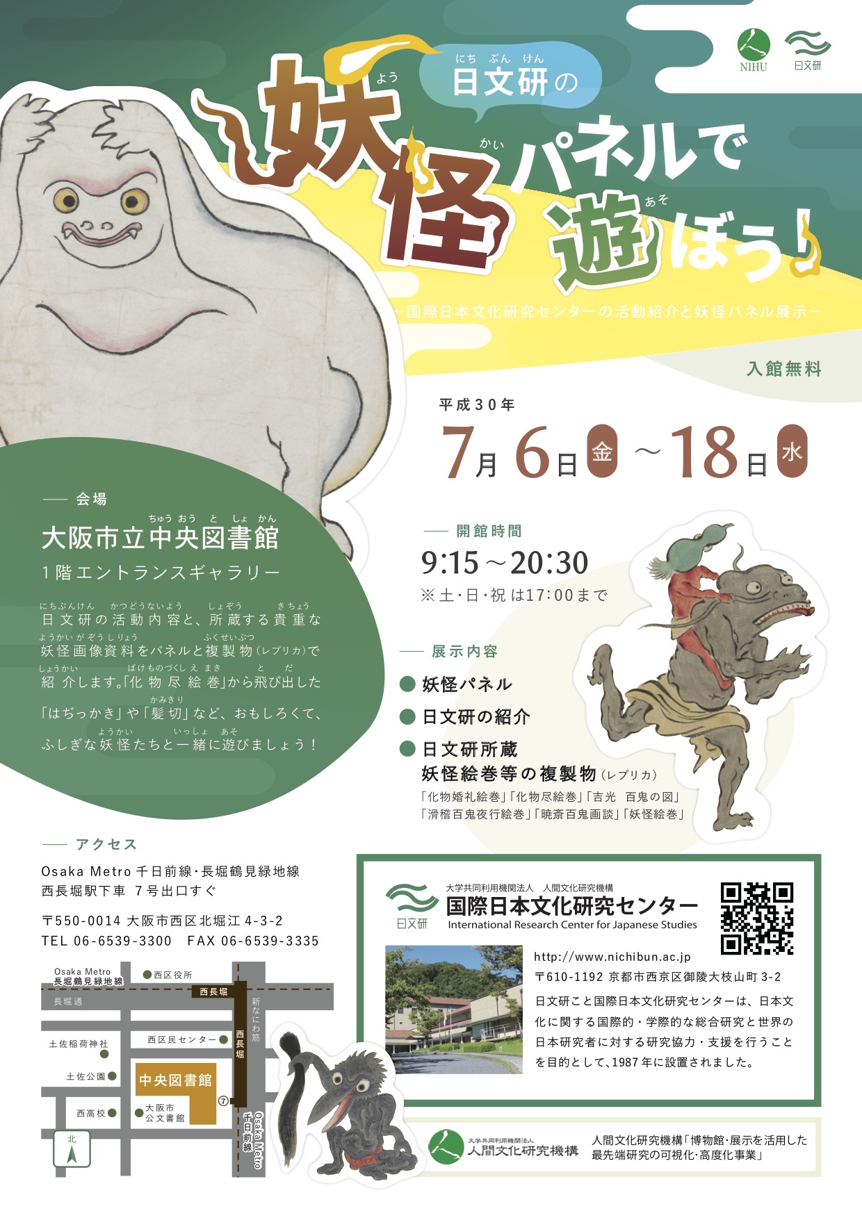 「日文研の妖怪パネルで遊ぼう!」妖怪画像資料の展示会を大阪市立中央図書館で開催します(2018年7月6日-18日)