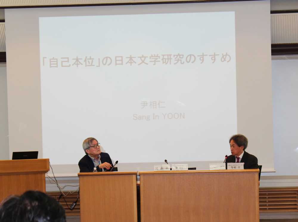 他方、「『自己本位』の日本文学研究のすすめ」という刺激的なテーマで発表した尹相仁氏(ソウル大学教授)は、かつて英文学にだまされているのではないかと呻吟した末に、「自己本位」という脱植民イデオロギーを標榜した夏目漱石の論点を切り口に、今日の韓国における日本文学の研究は他者本位に陥っているのではないかと問題提起しました。「日本」という共同体の価値観から脱した独自の「自己本位」研究の必要性と可能性について説得力ある持論を展開しました。