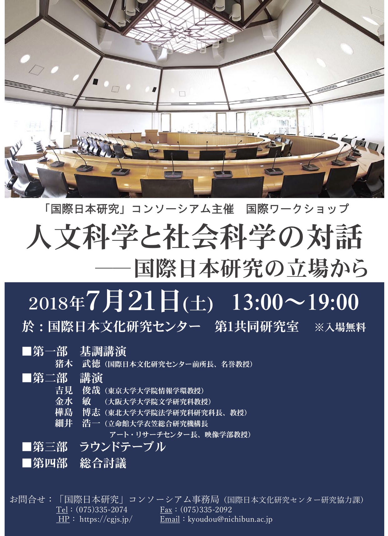 2018年7月21日(土) 国際ワークショップテーマ: 人文科学と社会科学の対話──国際日本研究の立場から