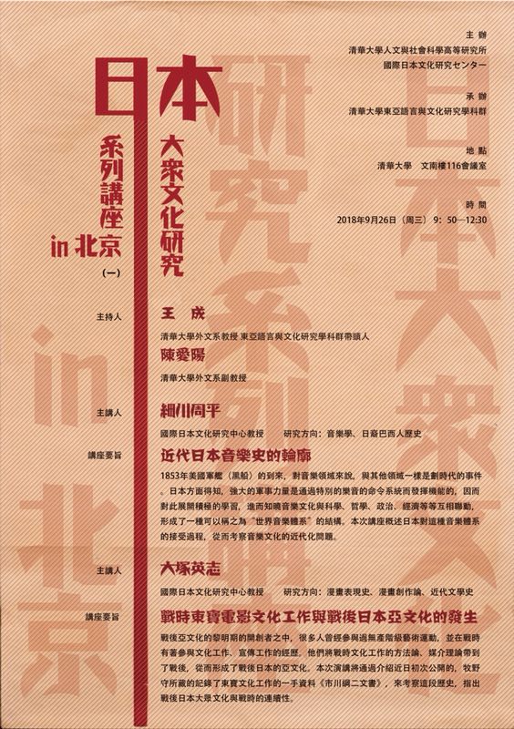 主催: 清華大学人文社会科学高等研究所・国際日本文化研究センター