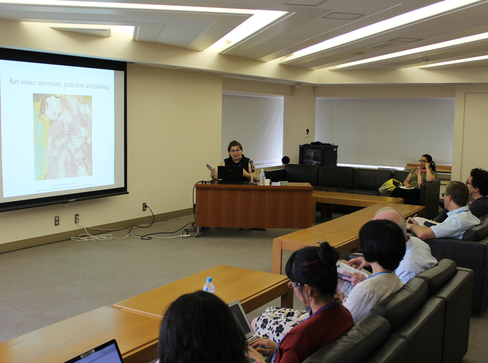 9月6日、アンナ・アンドレーワ外国人来訪研究員(ハイデルベルグ大学 ハイデルベルグ超文化史研究センター 研究員)を講師に迎え、英語によるイブニングセミナーが開催されました。“Buddhist Expertise on Embryology, Childbirth, and Women’s Health in Medieval Japan”(妊娠・出産および女性の健康に関する中世日本の仏教指導)と題した発表では、中世期に密教僧が、妊娠や出産といった女性の身体問題や健康管理に深く関与していたという、最新の研究成果が紹介されました。