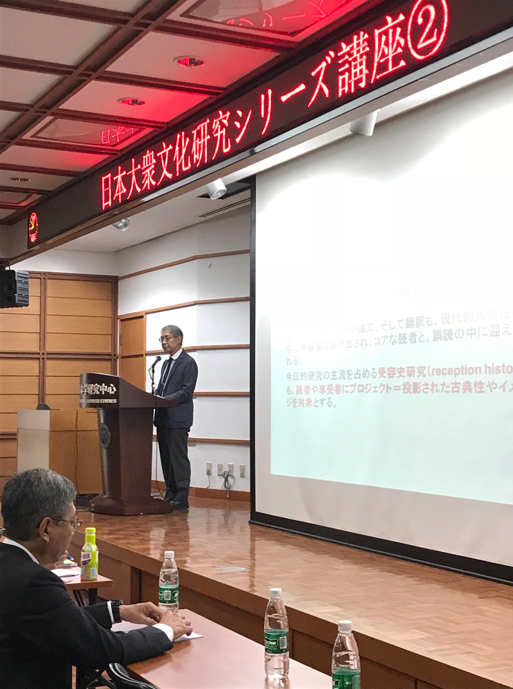 今回は、日文研が第3期中期計画中に推進している機関拠点型基幹研究プロジェクト「大衆文化の通時的・国際的研究による新しい日本像の創出」(以下、大衆文化研究プロジェクト)の研究成果発信でもあり、大衆文化研究プロジェクトがひとつの目標として掲げる教育パッケージの提供に関して、国際的な視点を得ることを目的として実施されたものです。