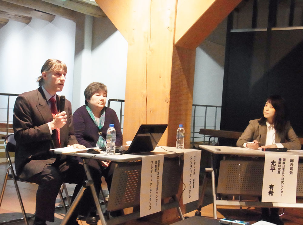 2月9日、平戸オランダ商館にて「国際海洋都市平戸と異文化へのあこがれ―在外資料が変える日本研究―」と題する国際シンポジウムが開催されました。本シンポジウムは、人間文化研究機構ネットワーク型基幹研究プロジェクト「日本関連在外資料調査研究・活用事業」のうち、「ハーグ国立文書館所蔵平戸オランダ商館文書調査研究・活用」の成果をゆかりの地で紹介することを目的に、平戸市と松浦史料博物館、平戸オランダ商館との共催により実現したもので、当日は計113名が参加しました。はじめに、岸上伸啓・人間文化研究機構理事と岡山芳治・松浦史料博物館館長の開会挨拶に続き、稲賀繁美教授が趣旨説明を行った後、松田清・京都大学名誉教授による基調講演「松浦静山と平戸商館時代」が行われました。続く第一部では、ハーグ国立文書館所蔵の平戸関係文書の解読を進めているフレデリック・クレインス准教授とシンティア・フィアレ・ライデン大学研究員が、オランダ商館初期の知られざる活動実態を報告したほか、前田秀人氏(平戸市文化観光商工部)がオランダ商館の会計帳簿について、福岡万里子・国立歴史民俗博物館准教授が、シーボルト晩年の「日本博物館」構想をめぐる“謎”について、それぞれ報告しました。