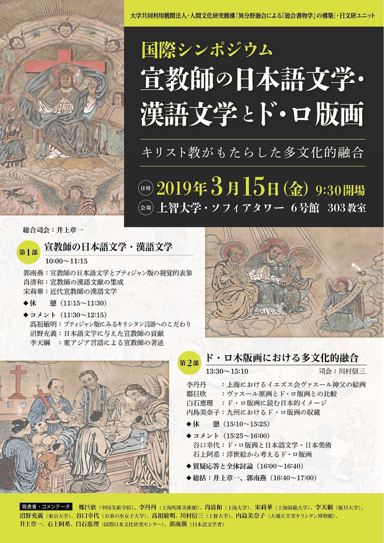 広領域連携型基幹研究プロジェクト「異分野融合による『総合書物学』の構築」による国際シンポジウム「宣教師の日本語文学・漢語文学とド・ロ版画-キリスト教がもたらした多文化的融合」を開催します。[日時]2019年3月15日(金) 10:00-17:00