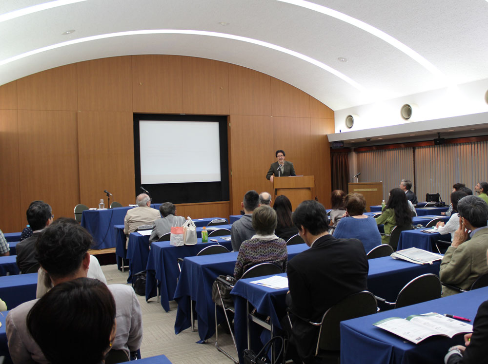 6月5日、東京都港区の国際文化会館講堂にて、日文研・アイハウス連携フォーラムを開催しました。本フォーラムは、公益財団法人国際文化会館(アイハウス)と連携し、現代日本と日本人への理解を多角的に深めるため、2014年から実施しています。17回目となる今回は、日本およびアジアの舞台芸能を専門とするマウリシオ・マルティネス・ロドリゲス外国人研究員が、“Japanese Performing Arts in the Spanish-speaking World”(スペイン言語圏における日本の舞台芸能)と題して英語で講演を行い、53名の参加がありました。