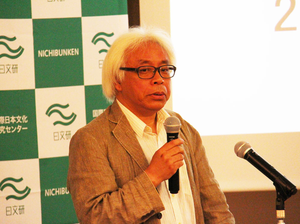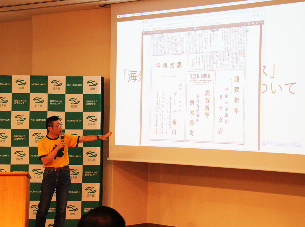 最後に、山田奨治教授が広領域連携型基幹研究プロジェクトの日文研ユニット「文化・情報の結節点としての図像」について、細川周平教授が新規公開の「海外邦字新聞データベース」について各々報告した後、大塚英志教授が、大衆文化研究プロジェクトの一環として7月から来年にかけて国内6会場を巡回する「みんなのミュシャ」展の関連情報を一足早く提供しました。