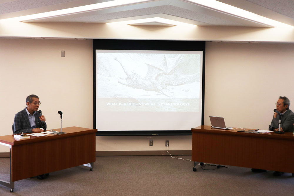 対談の最後には、日文研との共通の話題として、最近の関心事という “Demonology”(妖怪学)について、中世ヨーロッパにおける関連用語の定義や伝承を比較の視点から紹介してくださいました。日文研に対しては、外国人研究者への支援や学際的研究体制、学術誌Japan Review等を評価したうえで、さらなる海外への発信・研究交流の発展に期待を寄せました。