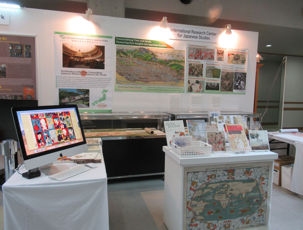 国立京都国際会館を主会場に日本で初開催された国際博物館会議(ICOM)の会期中、9月2日-4日の3日間にわたって行われた展示会(ミュージアム・フェア)に、日文研もブースを出展しました。期間中は、数ある所蔵資料のなかでも特に人気が高く、大英博物館での「春画」展にも出展した「風流艶色まねゑもん」(一部)と、先ごろまんが訳を出したことで知られる「酒天童子絵巻」(下巻)の原本とレプリカを無料公開したほか、Japan Review、Nichibunken Monographシリーズ、『異邦人のまなざし』シリーズなどの英文学術誌・書籍を中心に展示配付し、日文研コレクションの魅力と研究成果の実績を紹介しました。