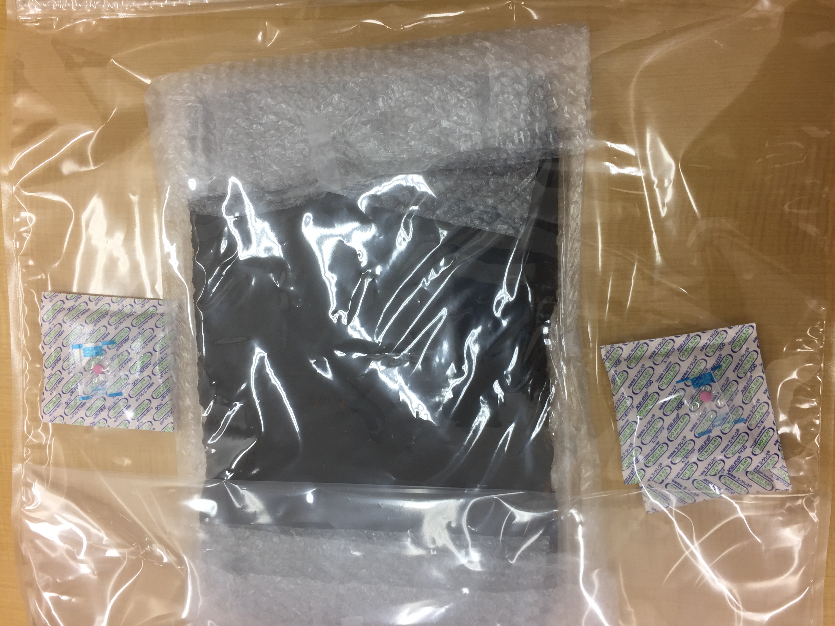 これは密閉した袋に板木と脱酸素剤を入れることで、数日かけて袋内を無酸素の状態にして、虫や卵を殺すという処置です。専門業者による化学的な燻蒸とは異なり、館内で手軽かつ早急に、比較的安価で処置をおこなうことができます。