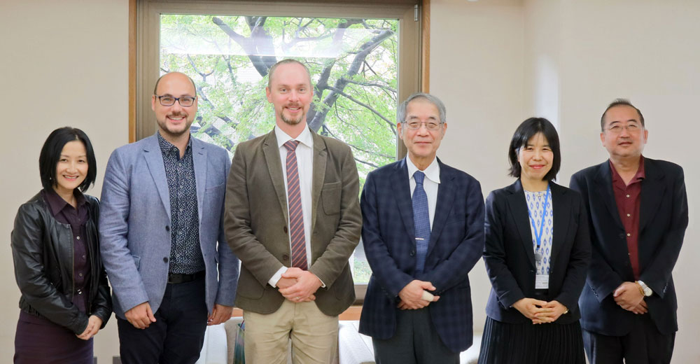 また10月29日には、チェコ科学アカデミー東洋研究所の皆さんを日文研にお招きしました。所長のOndřej Beránek(オンドレイ・ベラネック)氏、学科長のJakub Hrubý(ヤクプ・フルビー)氏、中央研究院台湾リサーチセンター長のTáňa Dluhošová(ターニャ・ドゥルホショバ)氏、研究員の豊沢信子氏が日文研を訪れ、小松和彦所長に挨拶された後、図書館などを見学されました。その後、所長主宰研究談話会「人文学の未来を考える」(2019年度第3回)にて、「中東欧の日本研究の現状とこれから」というテーマでお話しいただきました。