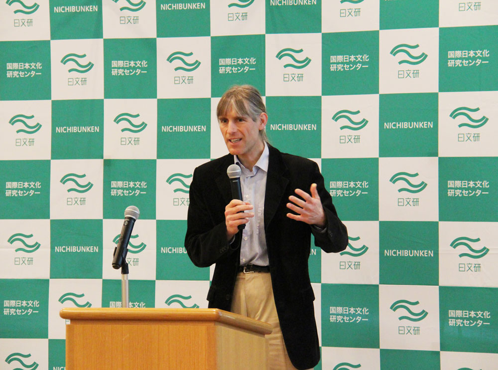 恒例となった所員の研究紹介では、昨年10月に人間文化研究機構の人文知コミュニケーターとして日文研に着任した光平有希・特任助教が、専門とする音楽療法史や、西洋で日本を表象して作られた古楽譜の研究とともに、人文学と社会をつなぐ橋渡しという役割について意気込みを語りました。