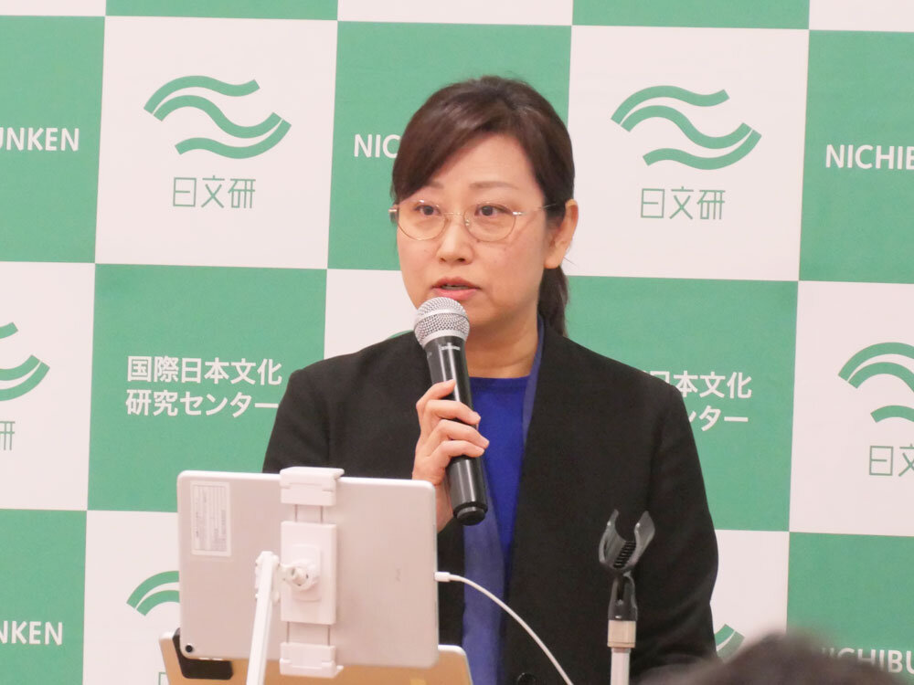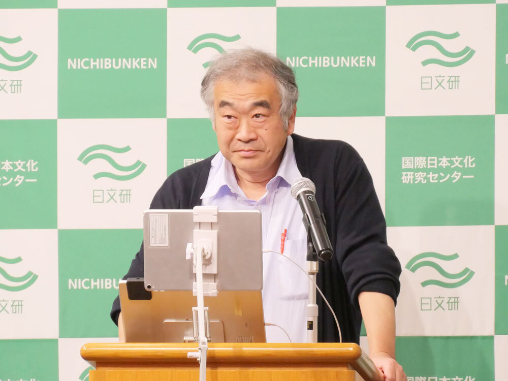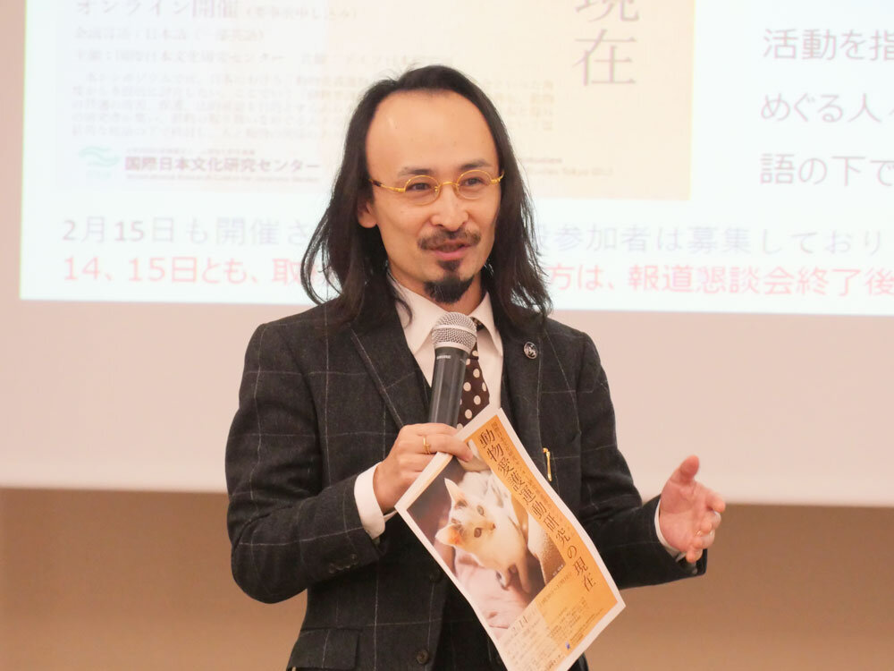 はじめに、司会の関野教授(総合情報発信室長)より、2025年10月以降に着任した3名の新任外国人研究員と、2月に着任する1名の新任教員の紹介がありました。続いて2025年9月から2026年3月にかけての日文研の活動および今後の予定について説明があり、中でも2026年1月17日から開催されている企画展「戦後80年 戦時下の大衆文化―〈外地〉へのまなざしを振り返る」を劉建輝教授が、2月14日・2月15日開催の研究推進部会シンポジウム 「動物愛護運動研究の現在」を中丸准教授が詳しく紹介しました。また、3月6日に開催される第74回日文研学術講演会「磯前順一教授退任記念講演会」の内容を中丸准教授と磯前教授が詳しく紹介しました。